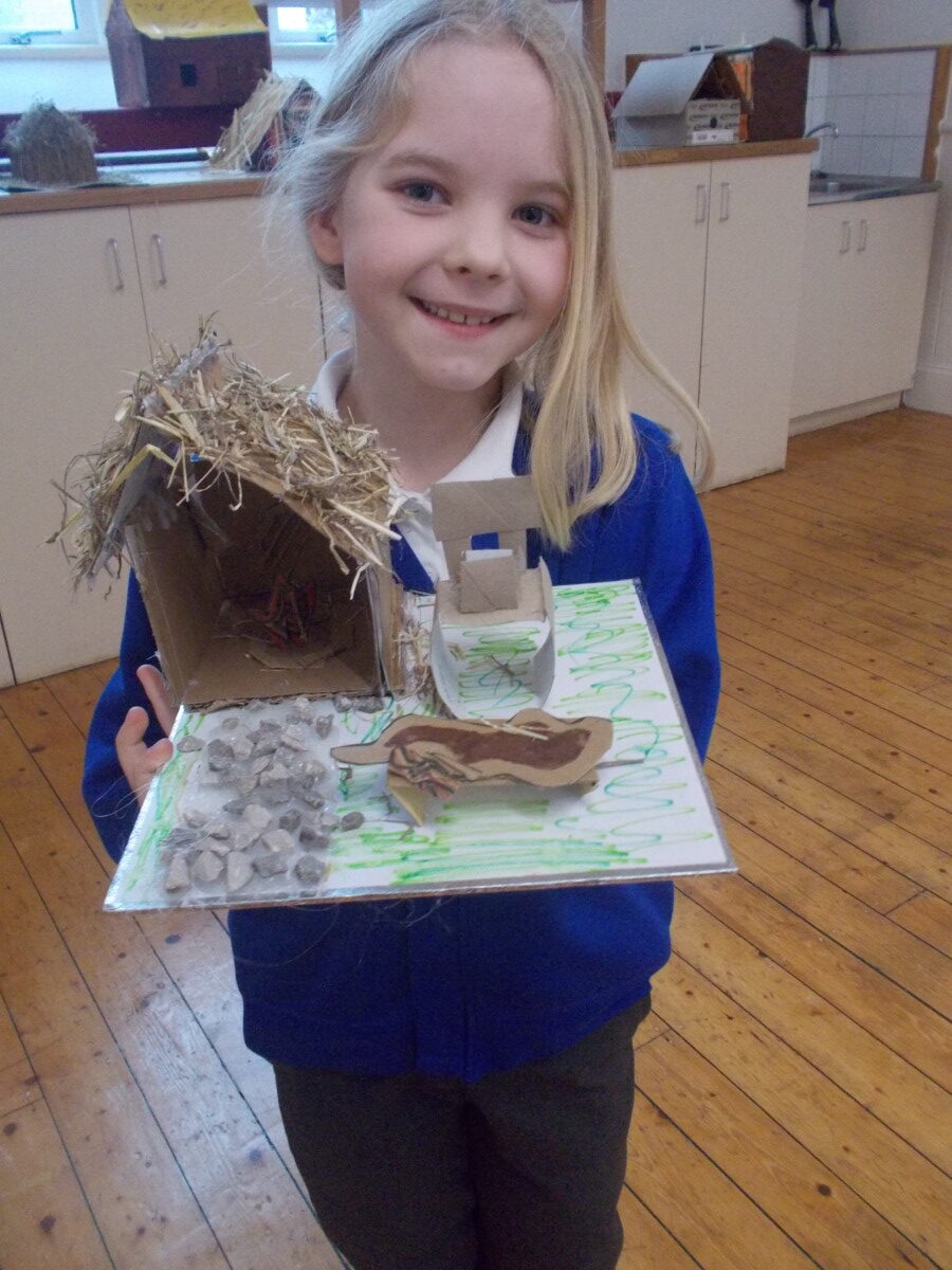 Class Three have made these fabulous Anglo-Saxon house and village models as a homework project. The children learnt about the key features of Anglo-Saxon houses and villages in lessons and have used this knowledge in their own models. The models include open fires in the middle of the houses, thatched rooves, wattle and daub walls, meat smoking over fires and rivers close by. The details are fantastic. Well done Class Three!